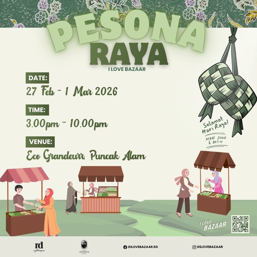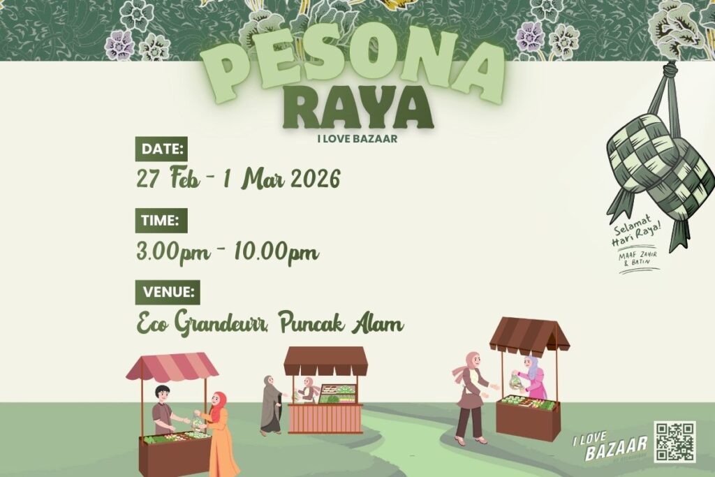 This Raya, Eco Grandeur Puncak Alam welcomes Pesona Raya, a festive community market inspired by the charm of kampung Raya and the joy of coming together. Browse a lovely mix of handmade creations, local fashion, lifestyle finds, and festive Raya treats, perfect for jalan-jalan, shopping, and soaking in the Raya mood.