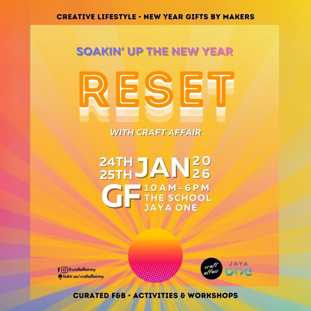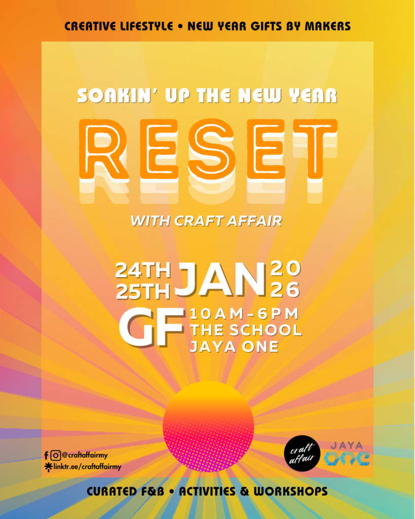 Start 2026 with intention and creativity at Reset with Craft Affair, a New Year creative market designed to inspire fresh beginnings through art, craft, and meaningful experiences. This January, The School by Jaya One transforms into a welcoming space for makers, designers, and visitors to reconnect with creativity and set the tone for the year ahead.
